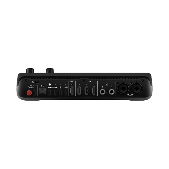 • Media playback, keying, transitions, multi-source scenes and graphic overlays accessible from the front panel